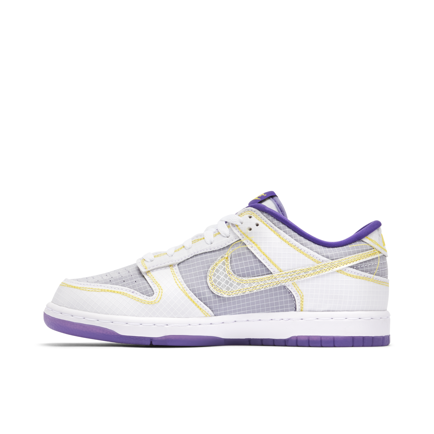 Reminiscent of the iconic LA Lakers colourway, the UNION LA x Nike Dunk Low Royal comes dressed in purple and yellow. Landing as part of the partnership’s “passport†collection, travel is the theme behind the design, with grid-effect ripstop fabric and excess threads all added to create a kick that catches eyes. A UN/LA tab sits on the side, nodding to UNION’s roots in the City of Angels, while Nike’s Swoosh adorns the heel, side and tongue. Rounded off with a Frontman logo embellishment on the lateral heels, the UNION LA x Nike Dunk Low Royal deserves a spot in your collection.