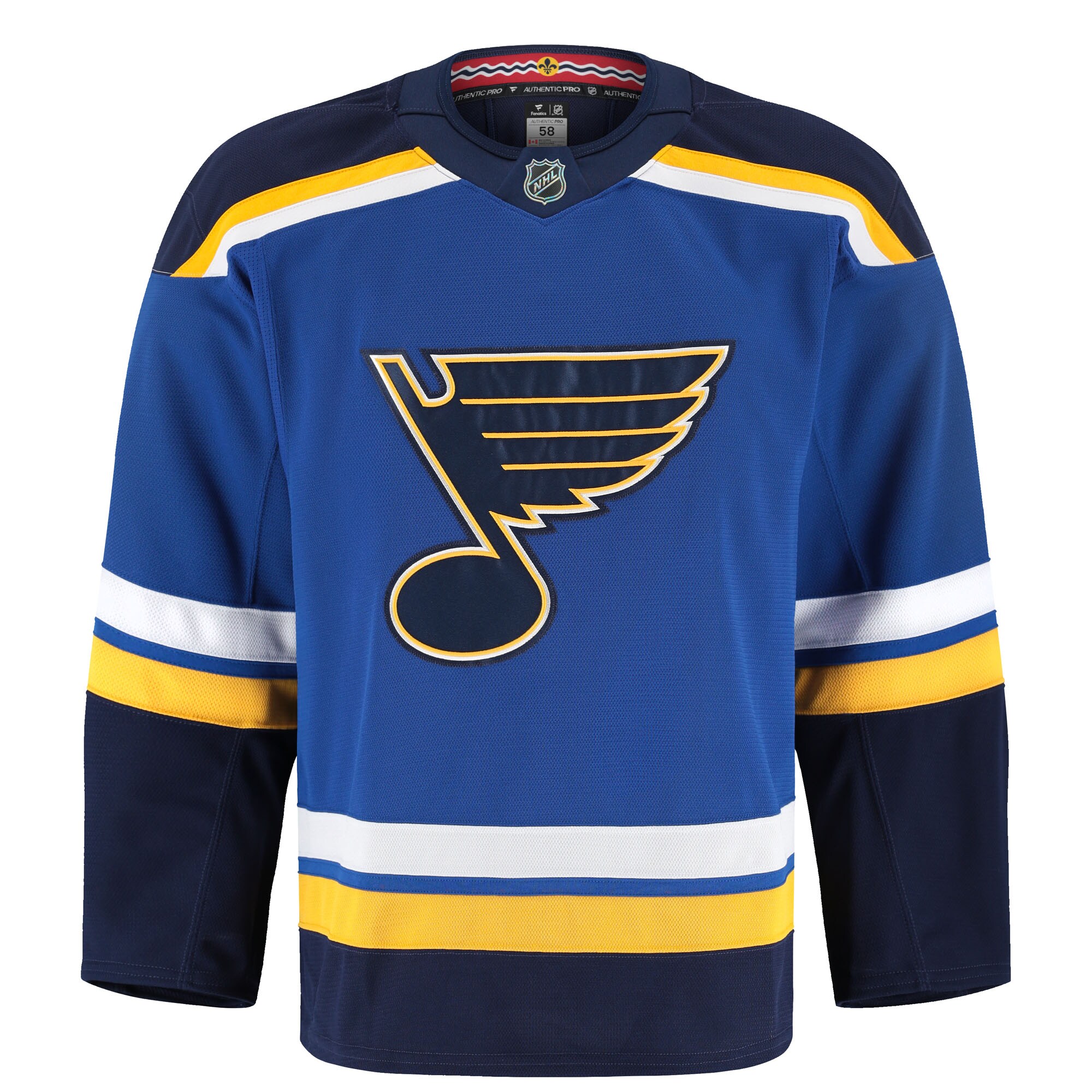 When you’re watching the on-ice action, you need a jersey to match. With this St. Louis Blues Fanatics Home Authentic Pro Jersey you get just that! The Authentic Pro jersey is the exact on-ice jersey the players wear, so putting it on will make you feel just like your favorite St. Louis Blues player. Available in traditional colors, this jersey possesses a more adjusted fit and mesh panels to enhance your comfort no matter where you enjoy the game!