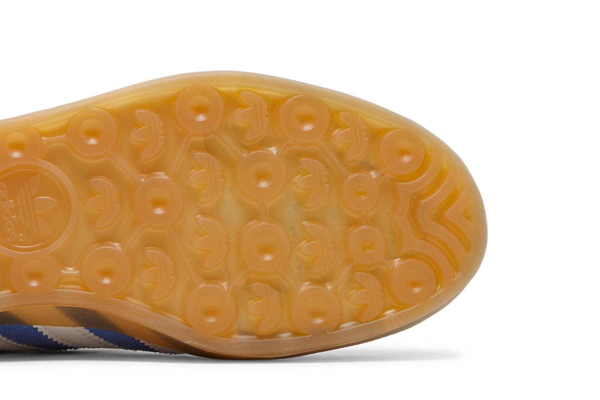 These sneakers from adidas feature a combination of blue fusion and gum colors, giving them a unique and eye-catching look.