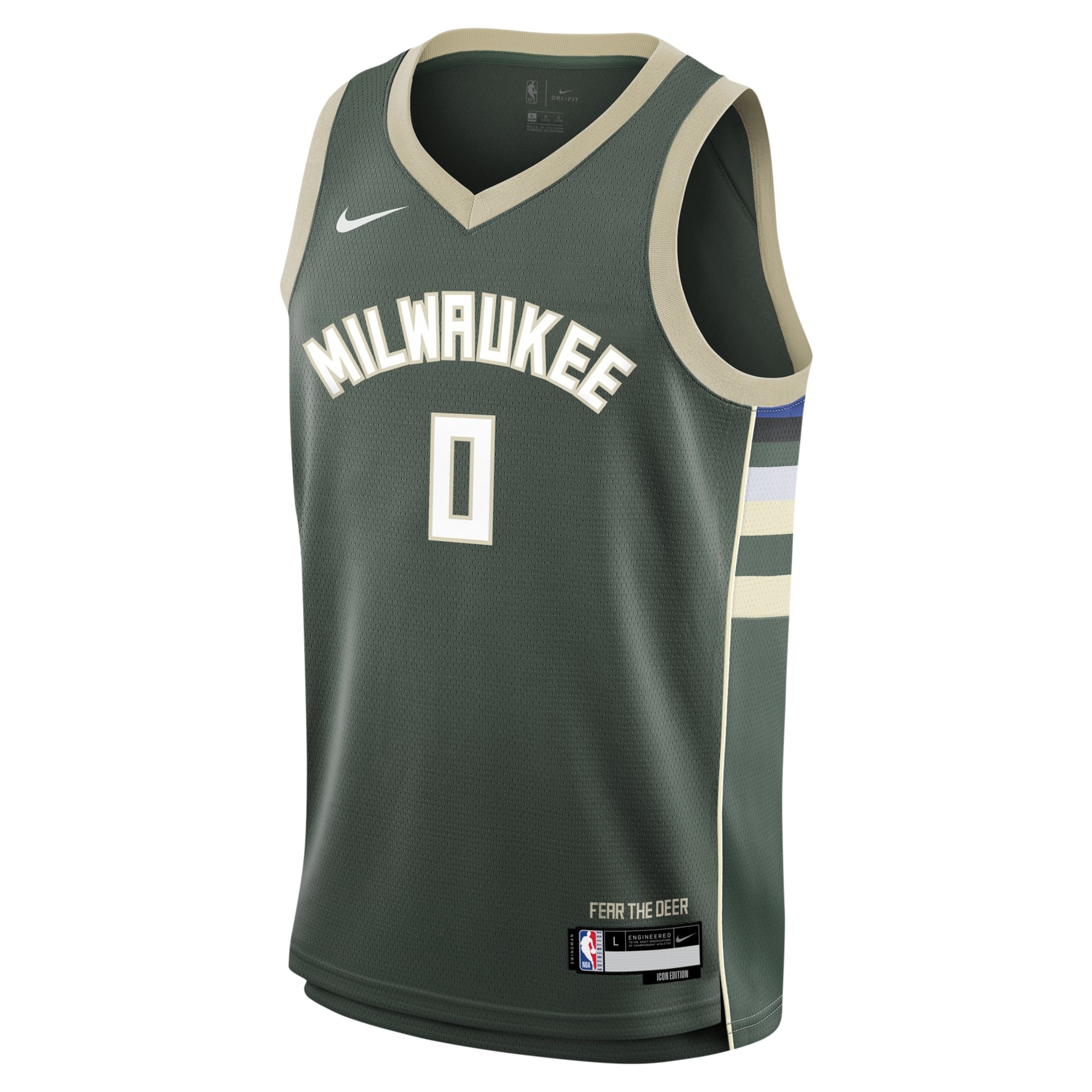 When the Milwaukee Bucks hit the court, your youngster will be ready to watch Damian Lillard lead the team to victory when they have this Swingman jersey from Nike. Designed with a bold Icon Edition build, this jersey lets them show support authentically. Integrated Dri-FIT technology evaporates moisture for lasting freshness.