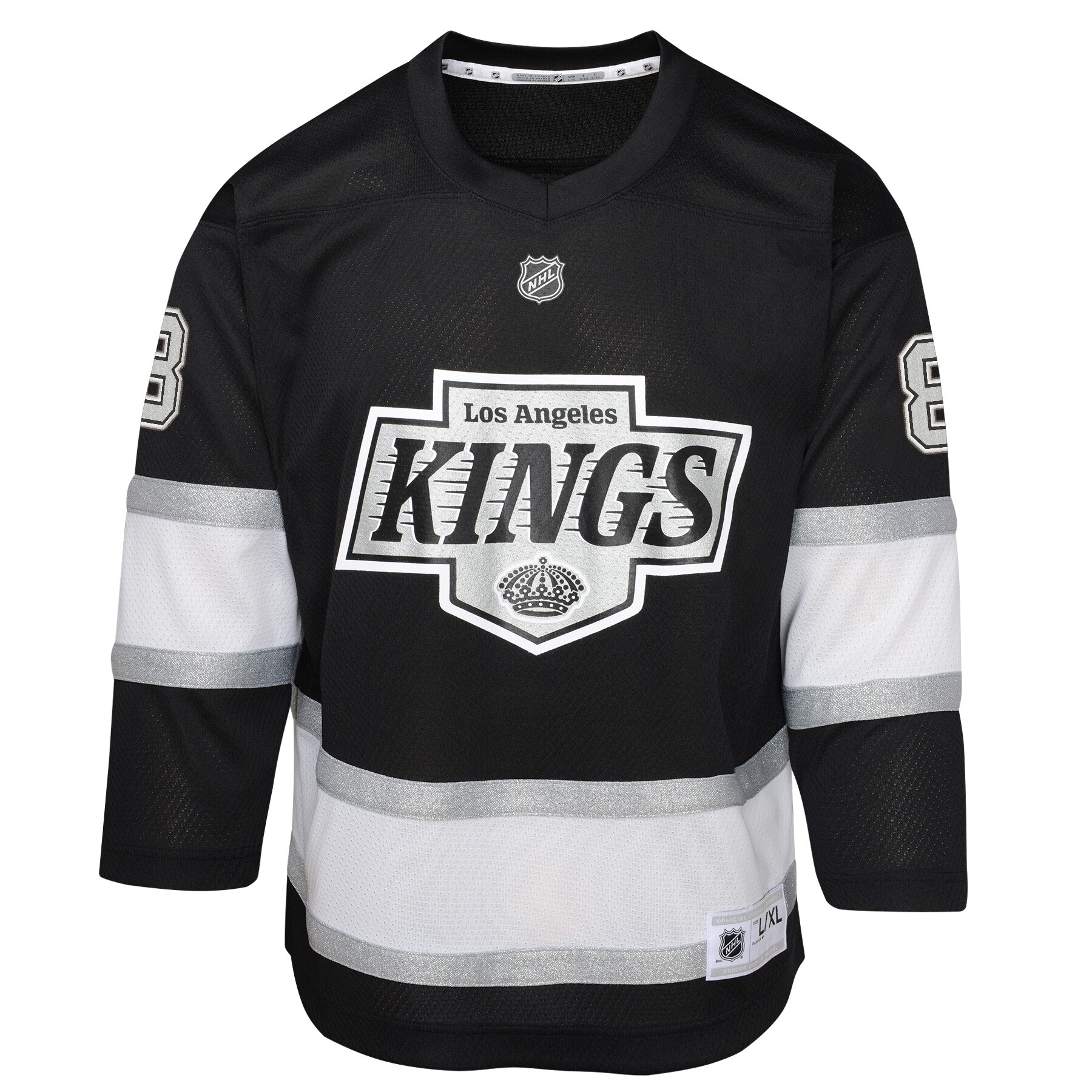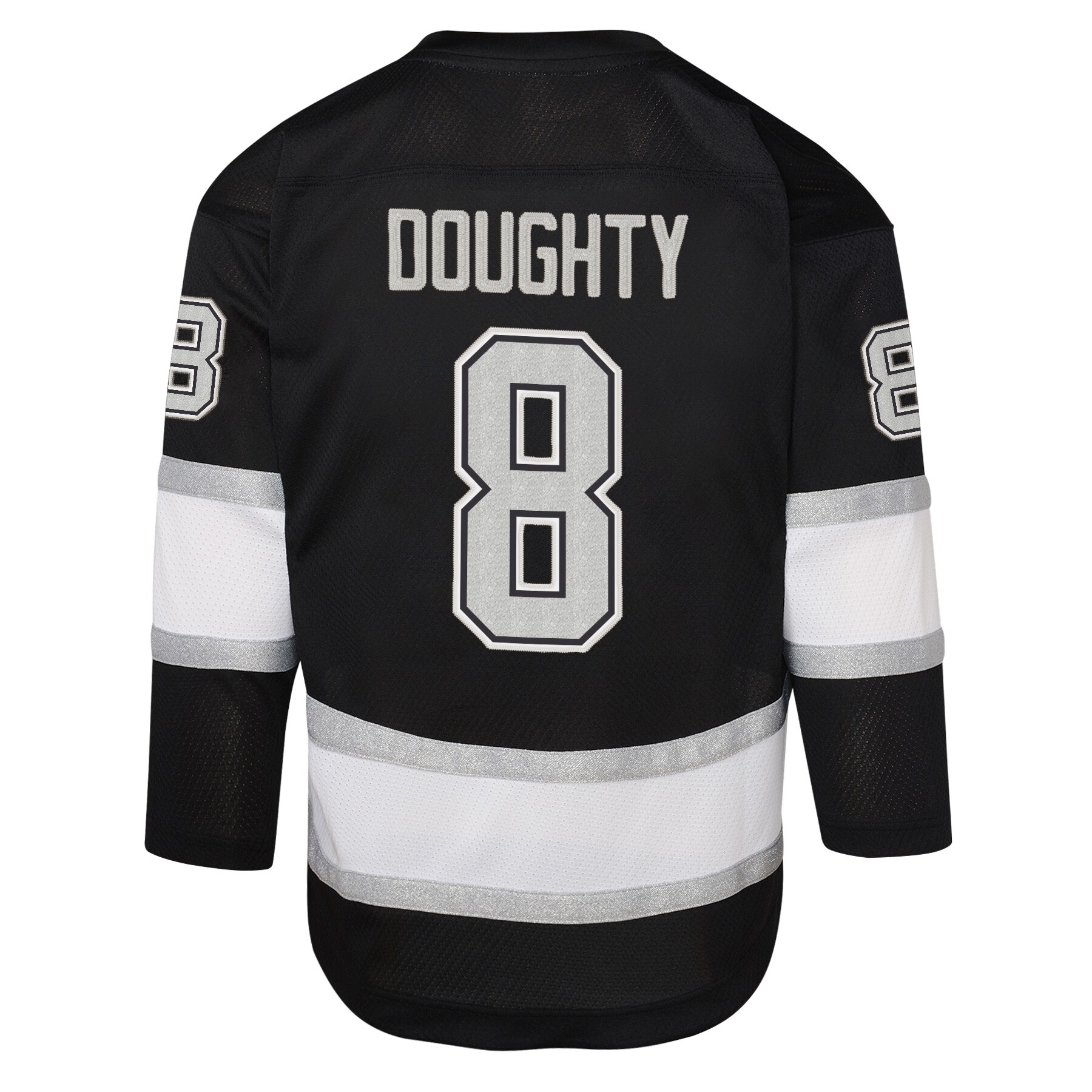 Get your young fan outfitted like their favorite Los Angeles Kings players with this Drew Doughty Home Replica Player Jersey from Outerstuff. This jersey is crafted from durable polyester to withstand the excitement of every game. Its classic design features screen-printed graphics that showcase your Los Angeles Kings pride, while the sewn-on stripes at the elbows and hem add a touch of authenticity. With its comfortable fit and eye-catching details, this jersey is the perfect way for your young fan to cheer on their favorite player.