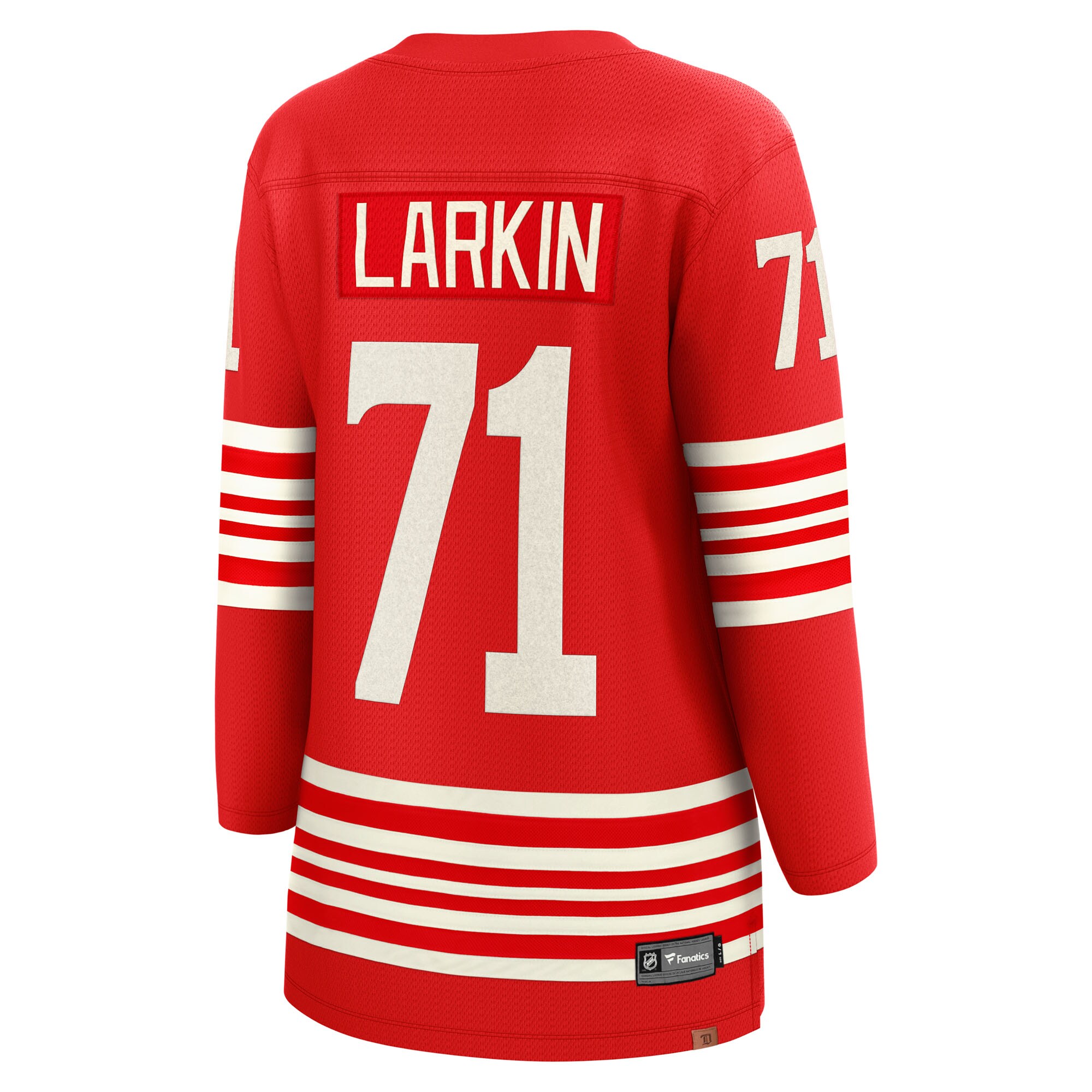 Celebrate the Detroit Red Wings’ rich history and bright future with this Dylan Larkin Centennial Breakaway Player Jersey. This Fanatics jersey commemorates the team’s 100 years of excellence, honoring legends of the past while showcasing the skill of today’s stars like captain Dylan Larkin. Built for comfort and style, the soft double-knit fabric offers a midweight feel perfect for layering, while the sewn-down sublimated embossed twill cresting and heat-pressed twill name and numbers capture the authentic look of an on-ice jersey. Featuring a classic tunic-length that’s designed specifically for women with a closer fit to the body, you’ll be able to look and feel your best on game day.