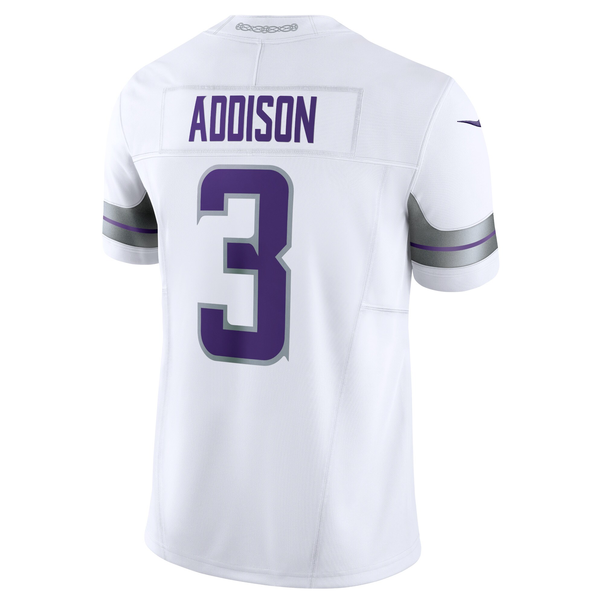 Walking into the stadium, you feel a rush of energy pass over you. You adjust your Minnesota Vikings Nike Limited jersey and know you’re ready to get swept up in the electricity of the game. Made for authenticity-seeking fans, this state-of-the-art Alternate Vapor F.U.S.E. jersey draws inspiration from your team’s on-field look with reimagined seamlines and a chainmaille mesh grill at the front neck. Its updated embellishments include sublimated twill name and numbers, which are heat-transferred onto the front and back panels to show support for your favorite player. Lightweight, breathable fabric with built-in Dri-FIT technology keeps you cool and comfortable as you celebrate every big play by Jordan Addison this season.