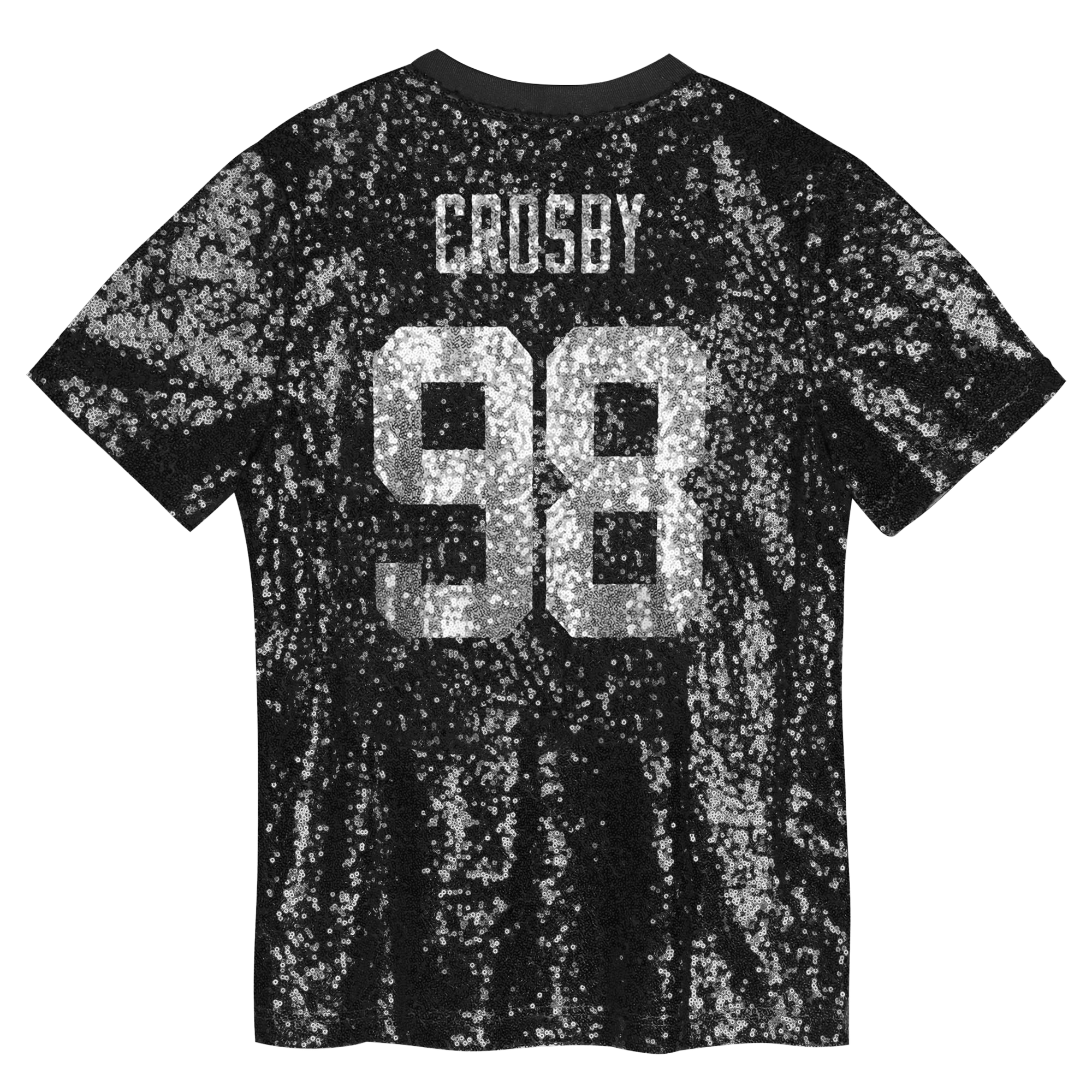 Young Las Vegas Raiders fans can shimmer and shine on game day in this Maxx Crosby Sequin V-Neck Fashion Jersey. It’s decked out in dazzling team-color sequins all over and displays their favorite player’s name and number in sequins on the back for extra sparkle. Lightweight, breathable polyester mesh fabric keeps them cool and comfortable while cheering on Maxx Crosby and the Las Vegas Raiders.