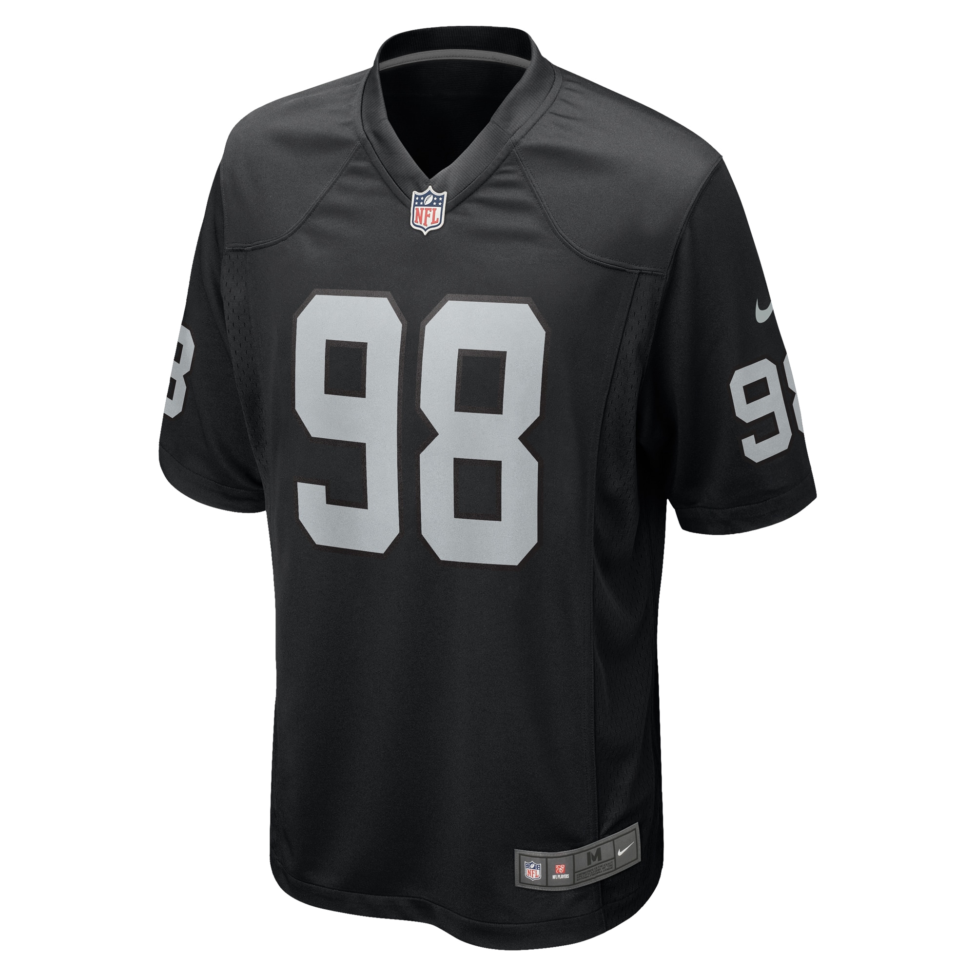 Rep the on-field look of your favorite Las Vegas Raiders player with this Maxx Crosby Game jersey from Nike. Its heat-sealed name, numbers and team details provide a kickoff-ready aesthetic while also offering a comfortable, lightweight feel. Designed for everyday movement, this jersey has a versatile tailored fit and features mesh side panels for added ventilation as you celebrate every big play by the Las Vegas Raiders this season.