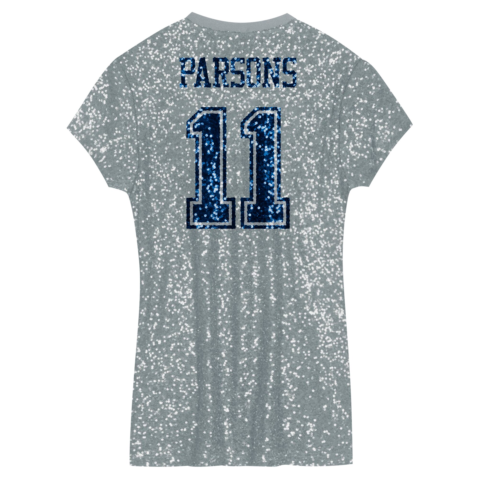 Give your young fan a stylish way to rep the Dallas Cowboys with this Micah Parsons Sequin Player Name & Number V-Neck Dress. This dazzling dress features an eye-catching allover sequin design that’s sure to make your young fan stand out from the crowd. It’s crafted from a breathable polyester mesh fabric that will keep her cool and comfortable all day long, whether she’s cheering on Micah Parsons and the Dallas Cowboys at the stadium or celebrating a victory at home.