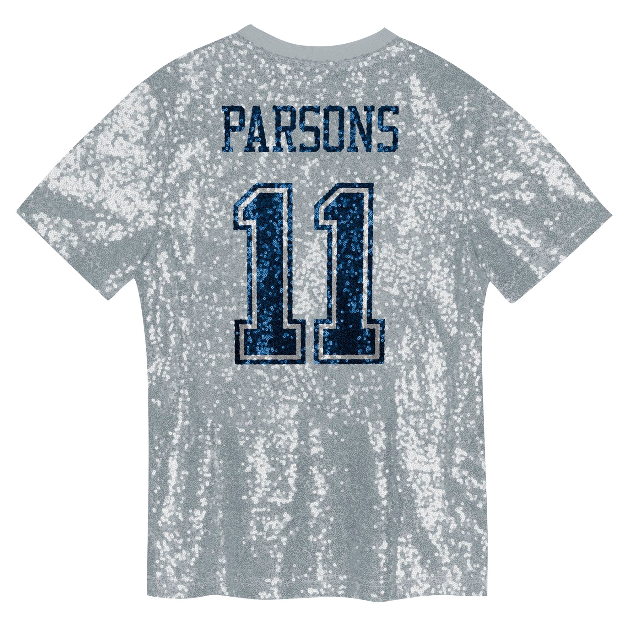 Young Dallas Cowboys fans can shimmer and shine on game day in this Micah Parsons Sequin V-Neck Fashion Jersey. It’s decked out in dazzling team-color sequins all over and displays their favorite player’s name and number in sequins on the back for extra sparkle. Lightweight, breathable polyester mesh fabric keeps them cool and comfortable while cheering on Micah Parsons and the Dallas Cowboys.