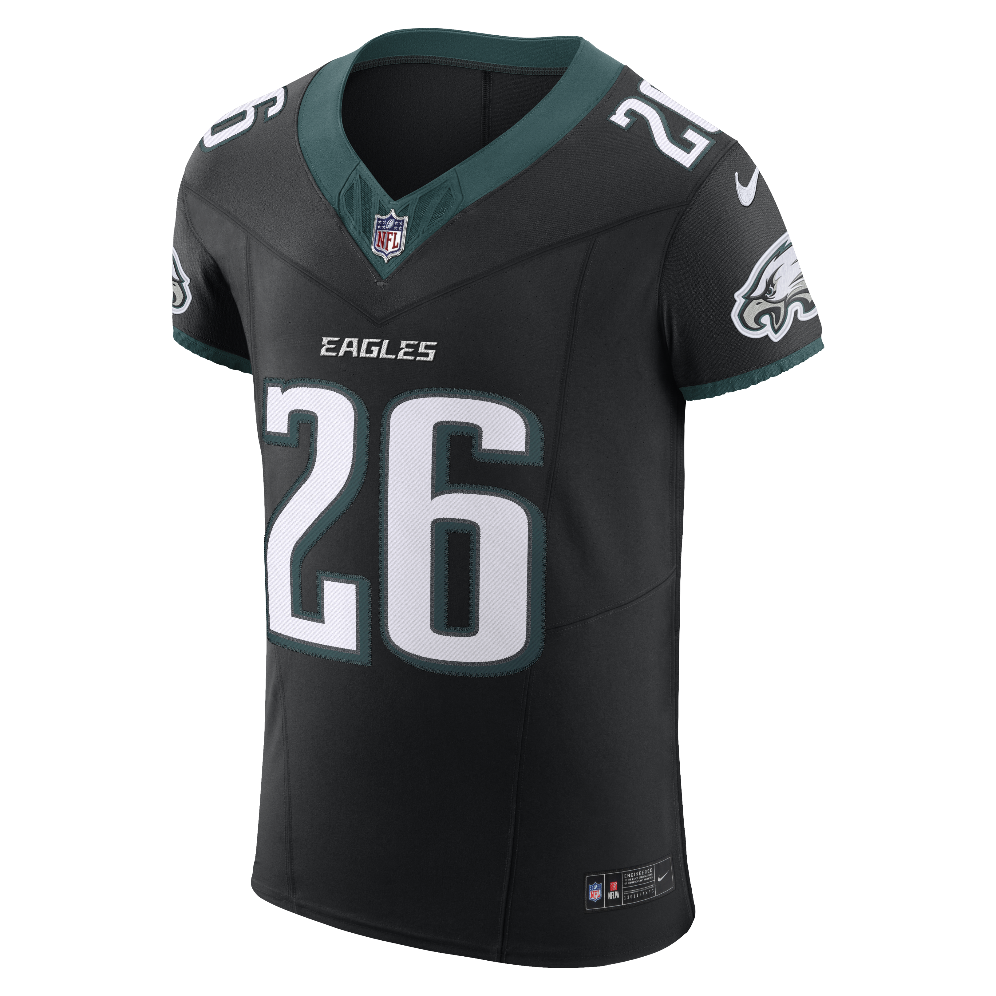 Showcase your admiration of one of the top players in the NFL with this Saquon Barkley Philadelphia Eagles Vapor F.U.S.E. Elite Jersey from Nike. This elite jersey boasts laser-perforated, four-way stretch woven fabric, ensuring lightweight breathability and unrestricted movement as you celebrate every Philadelphia Eagles touchdown. Premium twill names and numbers deliver an authentic look and feel, while Dri-FIT® technology wicks away moisture, keeping you cool and comfortable whether you’re in the stands or on the go.
