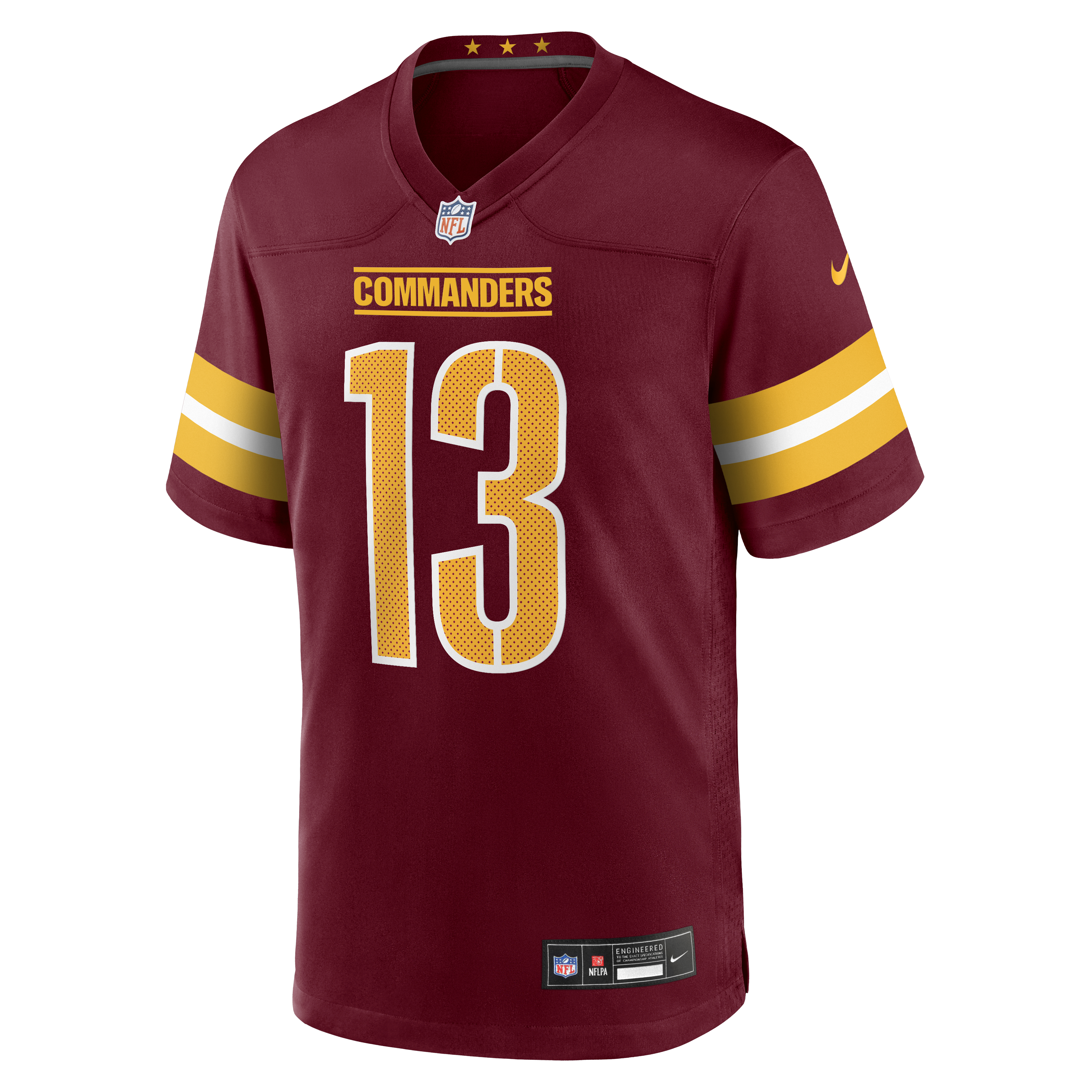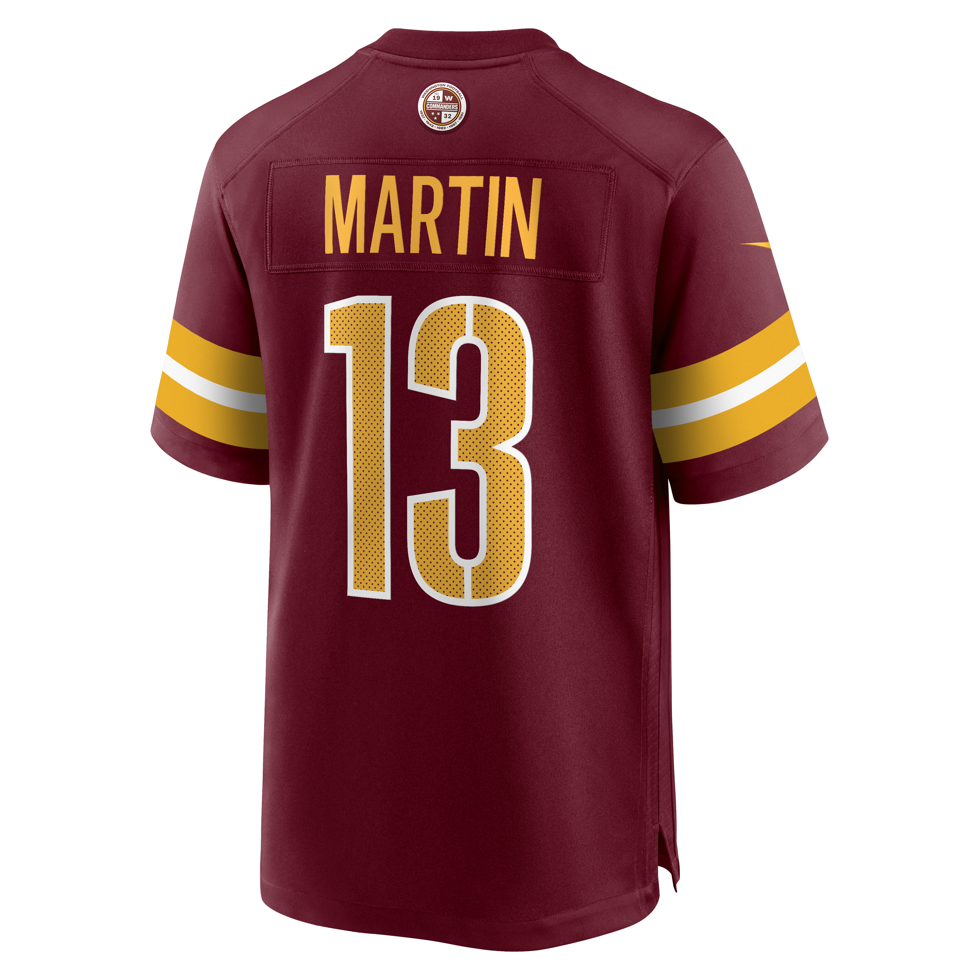This Tay Martin Nike Game Jersey is an essential piece of gear for any Washington Commanders fan looking to highlight their favorite player. The heat-sealed name, number and team details provide a kickoff-ready look that elevates your excitement for game day. Made with comfort in mind, this Washington Commanders Team replica jersey delivers a standard, lightweight fit and features breathable mesh side panels for added ventilation.